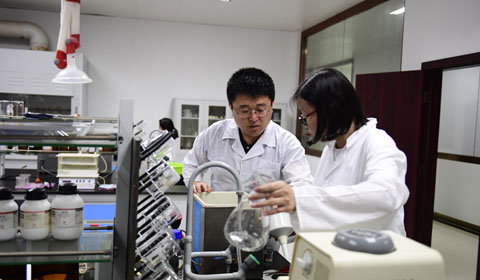藍灣科技與中國工程院院士、北京化工大學(xué)校長(cháng)譚天偉(左)團隊合作                  藍灣科技與上海交通大學(xué)教授、美國斯坦福大學(xué)博士傅磊(右二)團隊合作